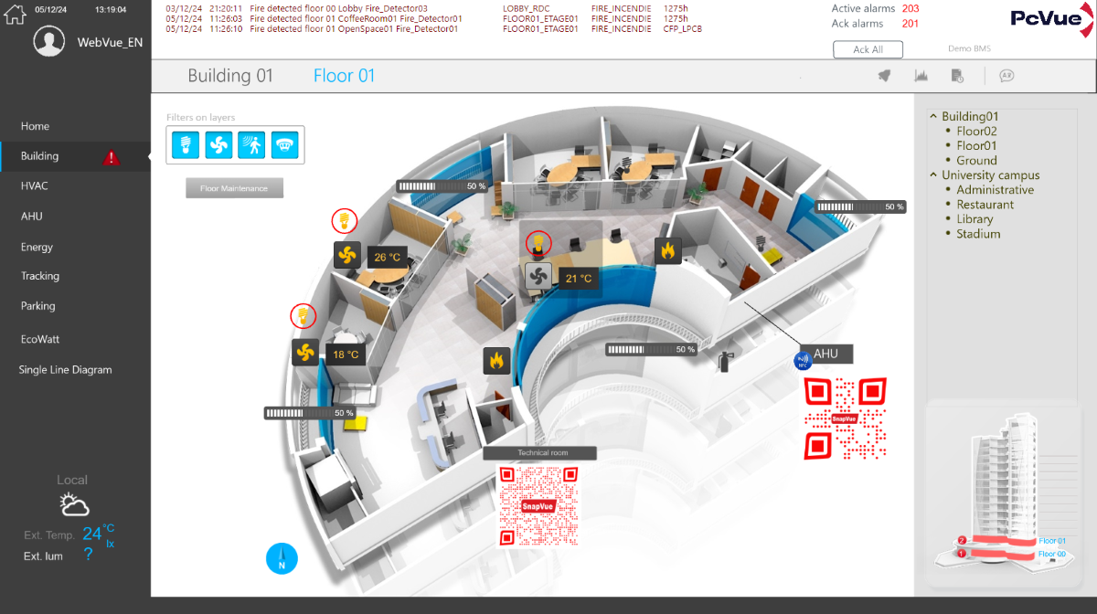 PcVue provides you with a state-of-the-art HMI/SCADA platform that enables cyber-secure monitoring and control of your diverse connected systems and devices. Developed with the latest software innovations, PcVue offers "ready-to-configure" features, allowing you to easily create a customized application tailored precisely to the needs of end users.
